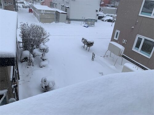 一晩ですっかり景色が変わりました。 やっぱり来ましたね〜、雪。 今日は一歩も外に出ないで、のんびりします。 さ、うちの定番のデザートでも娘と一緒に作りますか。 材料はこれだけ。 白玉粉、豆腐、あずき、フルーツ。 まずは、白玉を作ります。 白玉作り…