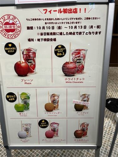 館の地下でりんご飴が出店されています。 40年くらい前はりんご飴大好物でした。 お祭りでは必ず買ってた。 でも、りんごアレルギーになってからは食べたくても食べられないモノになりました。 可愛い。見たら食べたくてたまらない。 飴がいらないくらいの美…